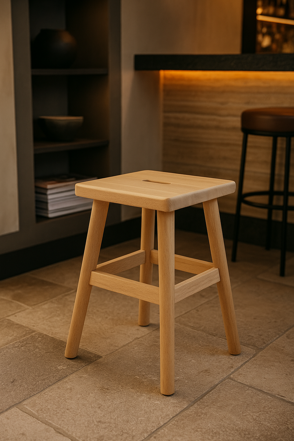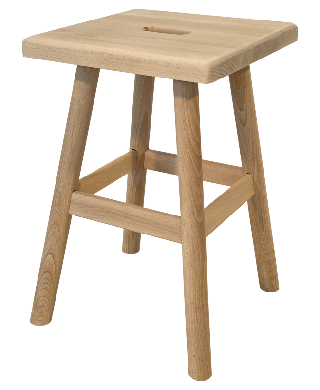 Tabouret carré en bois hêtre massif, robuste et stable.