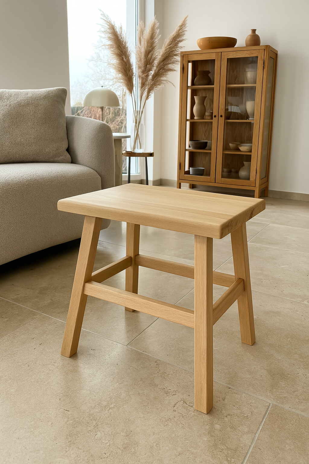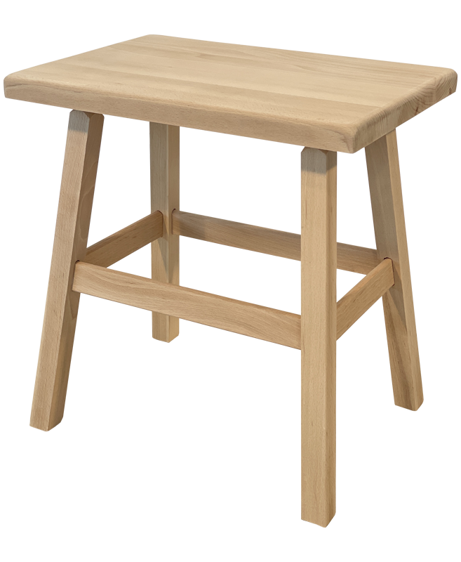 Tabouret rectangulaire en bois hêtre massif, robuste et stable.